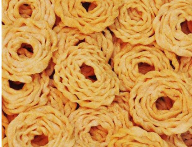 “പാലക്കാട് പുതുനഗരത്തിനടുത്തുള്ള കരിപ്പോട് എന്ന ഗ്രാമത്തിൽ നിർമ്മിക്കുന്ന സ്വാദേറിയ അരിമുറുക്കാണ് കര...