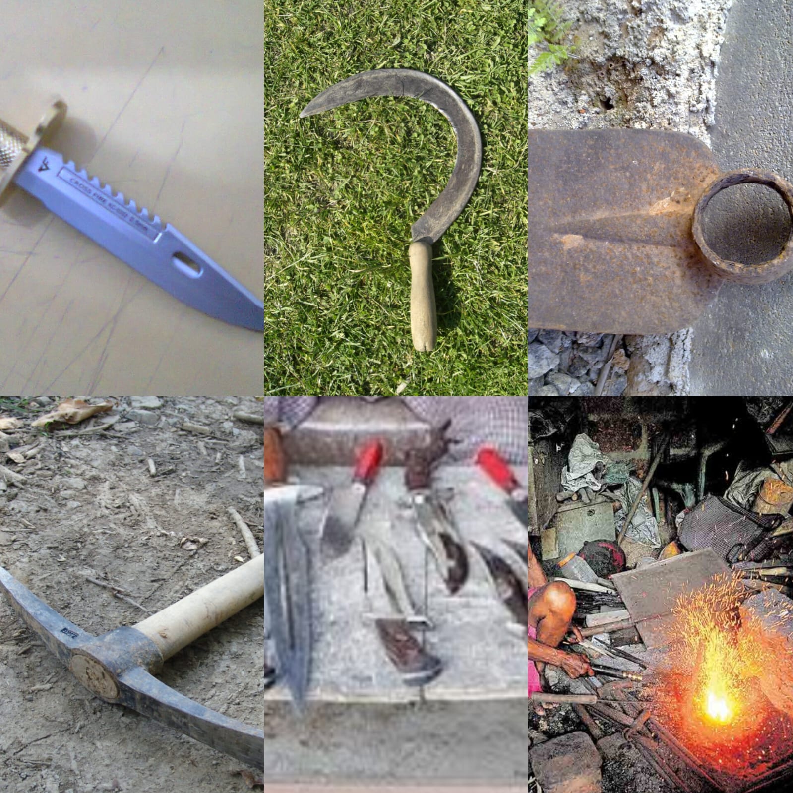 ഭൗതികഘടനയുമായി ബന്ധപ്പെട്ടതാണ് പണിയായുധങ്ങൾ. കാർഷികവൃത്തിയിലും അടുക്കളോപകരണങ്ങളിലും മനുഷ്യന് ഒഴിച്ചുകൂടാൻ പറ്റാത്തതാണ് പണിയായുധങ്ങൾ. ജന്തുക്കളെയും മനുഷ്യനെയും സംഹരിക്കാൻപോലും ആയുധങ്ങൾ ഉപയോഗിക്കുന്നു. നിത്യജീവിതവുമായി ബന്ധപ്പെട്ട് ഒരു അവശ്യഘടകമായി സാമൂഹികജീവിതത്തിൽ പണിയായുധങ്ങൾ ആദ്യകാലത്തെ മാറിയിരുന്നു. മനുഷ്യൻ്റെ ആവശ്യകത ആയുധങ്ങളുടെ നിർമ്മാണത്തിനു വഴിതെളിച്ചു. ഇതിൻപ്രകാരം സാമൂഹികഘടനയിൽ ആയുധങ്ങൾ നിർമ്മിക്കുന്ന ഒരു വിഭാഗവും ഉടലെടുത്തു. പണിയായുധങ്ങൾ ഉണ്ടാക്കുന്ന സ്ഥലത്തെ 'ആല'യെന്നും, അത് ഉണ്ടാക്കുന്ന ജനതയെ കൊല്ലൻ എന്നും വിളിക്കാൻ തുടങ്ങി. ജാതിവ്യവസ്ഥ നിലവിൽ വന്നതോടെ കൊല്ലപ്പണിക്കാർ ഒരു പ്രത്യേക വിഭാഗമായി സാമൂഹിക വ്യവസ്ഥിതിയിൽ നിലകൊള്ളുന്നു.