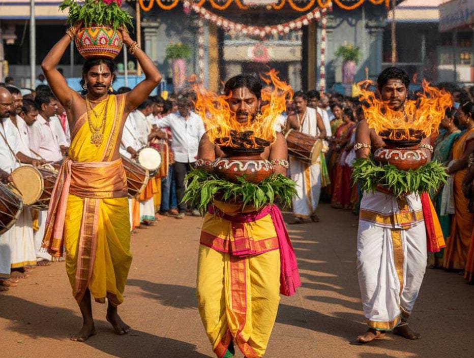 "മാരിയമ്മയെ ആരാധിക്കാൻവേണ്ടി നടത്തുന്ന മാരിയമ്മൻപൊങ്കലിൽ തീച്ചട്ടിയെടുത്തു തുള്ളുന്ന ആളെയാണ് 'അഗ്നിമാടൻ' എന്നു വിളിക്കുന്നത്. തീച്ചട്ടിയെടുക്കാതെ കൂടെത്തുള്ളാൻ മറ്റൊരാളും ഉണ്ടാകും. ഇതാണ് 'ചുടലമാടൻ.' കൈവെള്ളയിൽ ആര്യവേപ്പില വച്ച് അതിന്മേൽ മൺചട്ടിവച്ച് അതിൽ തീകൊളുത്തും. തീ നന്നായി കത്താൻ മൺചട്ടിയിൽ മരക്കഷണങ്ങളിട്ട് എണ്ണയും ഒഴിക്കും. ആര്യവേപ്പിലയും പൂക്കളുംകൊണ്ടലങ്കരിച്ച കുടവുമായി മാരിയ ഛൻകോവിലിലേക്കു നീങ്ങുന്ന ആളാണ് 'കുംഭക്കാരൻ.' മഞ്ഞപ്പ ട്ടുടുത്ത കുംഭക്കാരൻ്റെ ഒപ്പമാണ് അഗ്നിമാടനും ചുടലമാടനും കോവിലിലേക്കു നീങ്ങുന്നത്. ഒപ്പം വാദ്യഘോഷങ്ങളോടെ ഭക്തരും ഉണ്ടാകും. " |