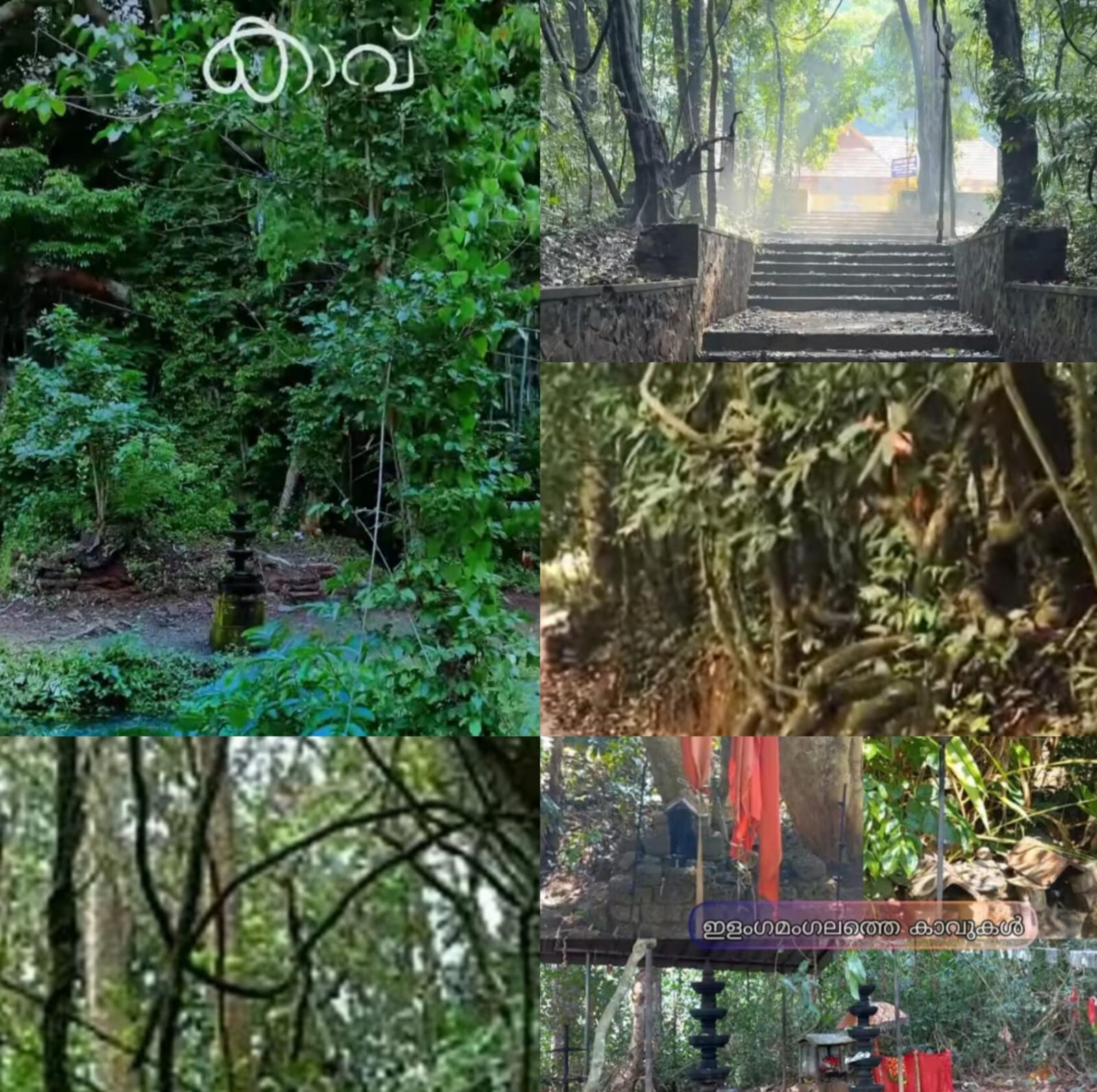 "കീഴാള ജനതയുടെ ആരാധനാകേന്ദ്രങ്ങളായിരുന്ന കാവുകളും തൃപ്രങ്ങോട് ഗ്രാമത്തിലുണ്ട്. 'കാവ്' എന്ന പദത്തിന് 'മര...
