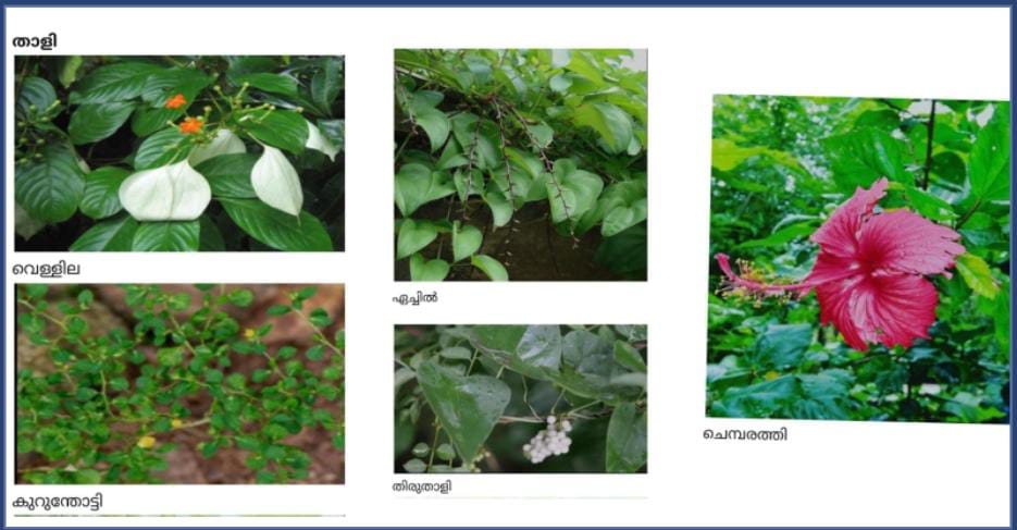 1.”വെള്ളില,കുറുന്തോട്ടി,ഏച്ചിൽ,തിരുതാളി,ചെമ്പരത്തി ഇവയുടെ ഇലയാണ് തലയിൽ തേക്കാനുള്ള താ...
