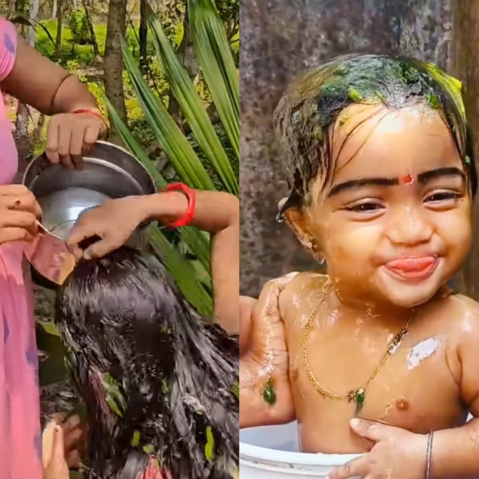 " മിനുപ്പും കൊഴുപ്പും നല്കുന്ന നിരവധി വസ്തുക്കളുണ്ട്. അവയിൽ പലതും പ്രാകൃതിക വസ്തുക്കളിൽനിന്നു ലഭിക്കുകയും ചെയ്യും. എണ്ണ തേച്ചു കുളിക്കുമ്പോൾ ഉപയോഗിക്കാറുള്ള താളി, വാക, അത്ത് തുടങ്ങിയ വസ്തുക്കൾ ഗ്രാമീണർക്ക് ഇന്നും നിത്യ പരിചിതങ്ങളാണ്. തലയിലെ മെഴുക്കു കളയുവാനാണ് താളിയുടെ ചാറ് തലയിൽ തേക്കുന്നത്. കേശവർദ്ധനയ്ക്കും അതു സഹായിക്കും. ശരീരത്തിലും താളി തേക്കാം. താളിത്തട്ടം, വാകത്തട്ടം തുടങ്ങിയവയുമായി പെണ്ണുങ്ങൾ കുളിക്കുവാൻ പോകുന്നതിന്റെ വർണനകൾ പഴയ നാടൻപാട്ടുകളിൽ കാണുവാൻ കഴിയും. "താളിതരിത്തട്ടിൽ താളിയുമായ് വാകാമണിത്തട്ടിൽ വാകയുമായ് മഞ്ഞൾ മണിത്തട്ടിൽ മഞ്ഞളുമായ് തിരുവൻ കടവിലെഴുന്നള്ളീറ്റ് താളിയും തേച്ചു മെഴുക്കിളക്കി അത്തുമേ തേച്ചു മുടിയിളക്കി മഞ്ഞളും തേച്ചു നിറമെടുത്തു." എന്നിങ്ങനെ 'കളിക്കപ്പാട്ടിൽ' (6: 120) കാണുന്ന വർണന അവയുടെ പൊതു സ്വഭാവമാണ് വ്യക്തമാക്കുന്നത്. ഏച്ചിൽത്താളി, വേരില്ലാത്താളി, പാടത്താളി, കുരുണിത്താളി, ചീരത്താളി, കുറുന്തോട്ടിത്താളി, ചെമ്പരത്തിത്താളി, ചെറുനിച്ചൽത്താളി, ഏലോത്താളി, കറ്റാർവാഴത്താളി എന്നിങ്ങനെ ഔഷധഗുണമുള്ള നിരവധി താളികൾ ഉപയോഗിച്ചു വരാറുണ്ടായിരുന്നു. ഇഞ്ച എന്ന ഒരു തരം കാട്ടുവള്ളിയുടെ തോലുരിച്ച് അടിച്ച് മാർദ്ദവം വരുത്തിയതാണ് 'അത്ത്.' അതും വാകപ്പൊടിയും കുളിക്കുമ്പോൾ ശരീരത്തിൽ തേക്കാറുള്ളവയാണ്. ഔഷധഗുണമുള്ള ഇവ ത്വഗ്രോഗങ്ങൾ ഇല്ലാതാക്കുകയും ശരീരത്തിന് മാർദ്ദവം വർദ്ധിപ്പിക്കുകയും ചെയ്യുന്നു. പുരുഷന്മാർ താളിയും അത്തും മറ്റും ഉപയോഗിക്കാറുണ്ടെങ്കിലും, സ്ത്രീകളാണ് ഇവ കൂടുതൽ ഉപയോഗിച്ചു കാണുന്നത്. പ്രസവിച്ച സ്ത്രീകൾ ഇവ ഉപയോഗിക്കണമെന്ന് നിർബന്ധമായിരുന്നു. ചെറുപയർ, കടല തുടങ്ങിയ ധാന്യങ്ങളുടെ പൊടിയും കുളിക്കുമ്പോൾ ശരീരത്തിൽ തേക്കാറുണ്ട്. മൈസൂർവാഴപ്പഴം ശരീരത്തിൽ തേച്ചാൽ കാന്തി വർദ്ധിക്കുമത്രേ. മഞ്ഞൾ, മാവിൻ്റെ തോല് ഇവ ഇടിച്ച് പൊടിയാക്കി കുളിക്കുമ്പോൾ തേച്ചാൽ ശരീരത്തിനു നിറവും മിനുസവും കൂടും. പ്രസവിച്ച സ്ത്രീകൾ കുളിക്കുമ്പോൾ അതു തേക്കാറുണ്ട്. "