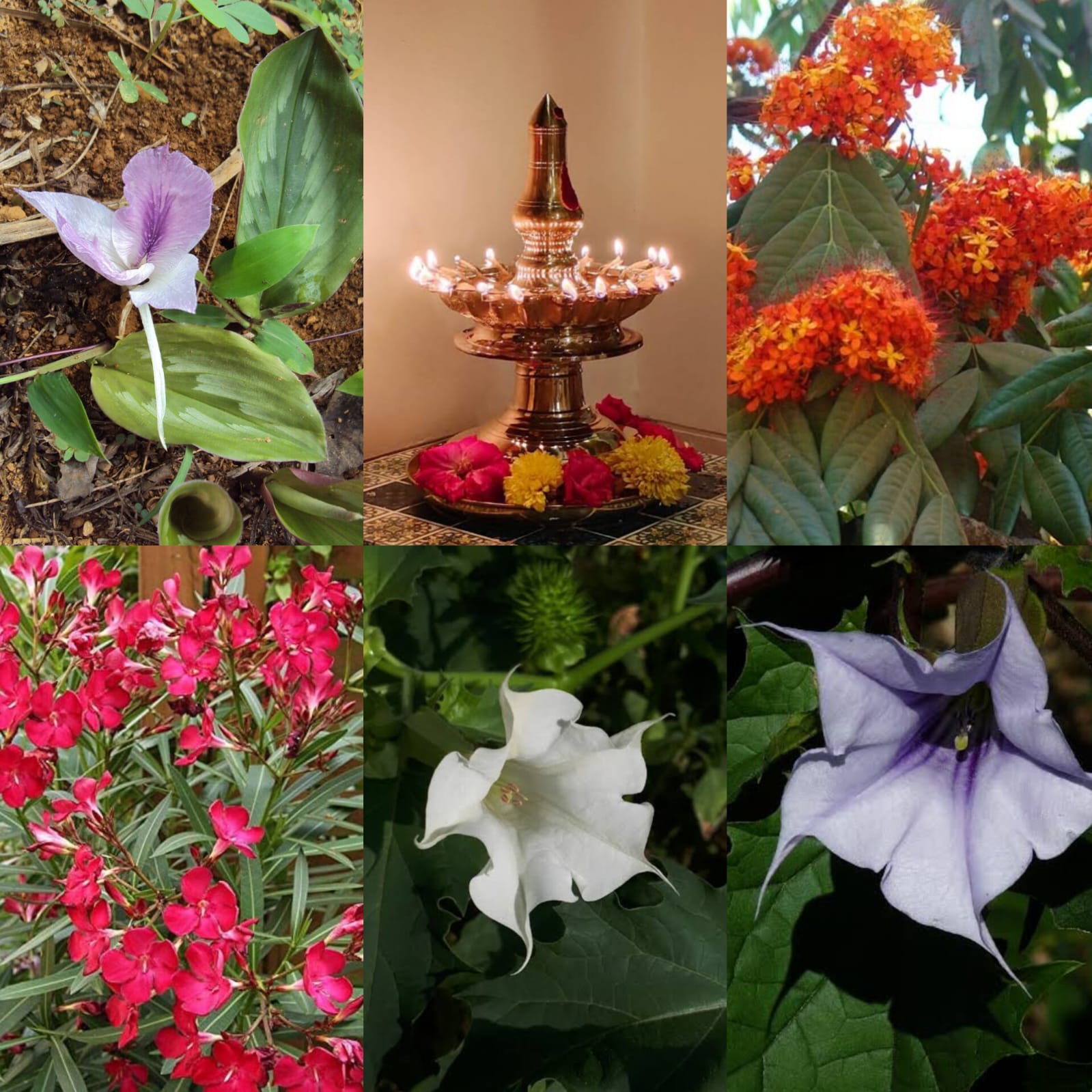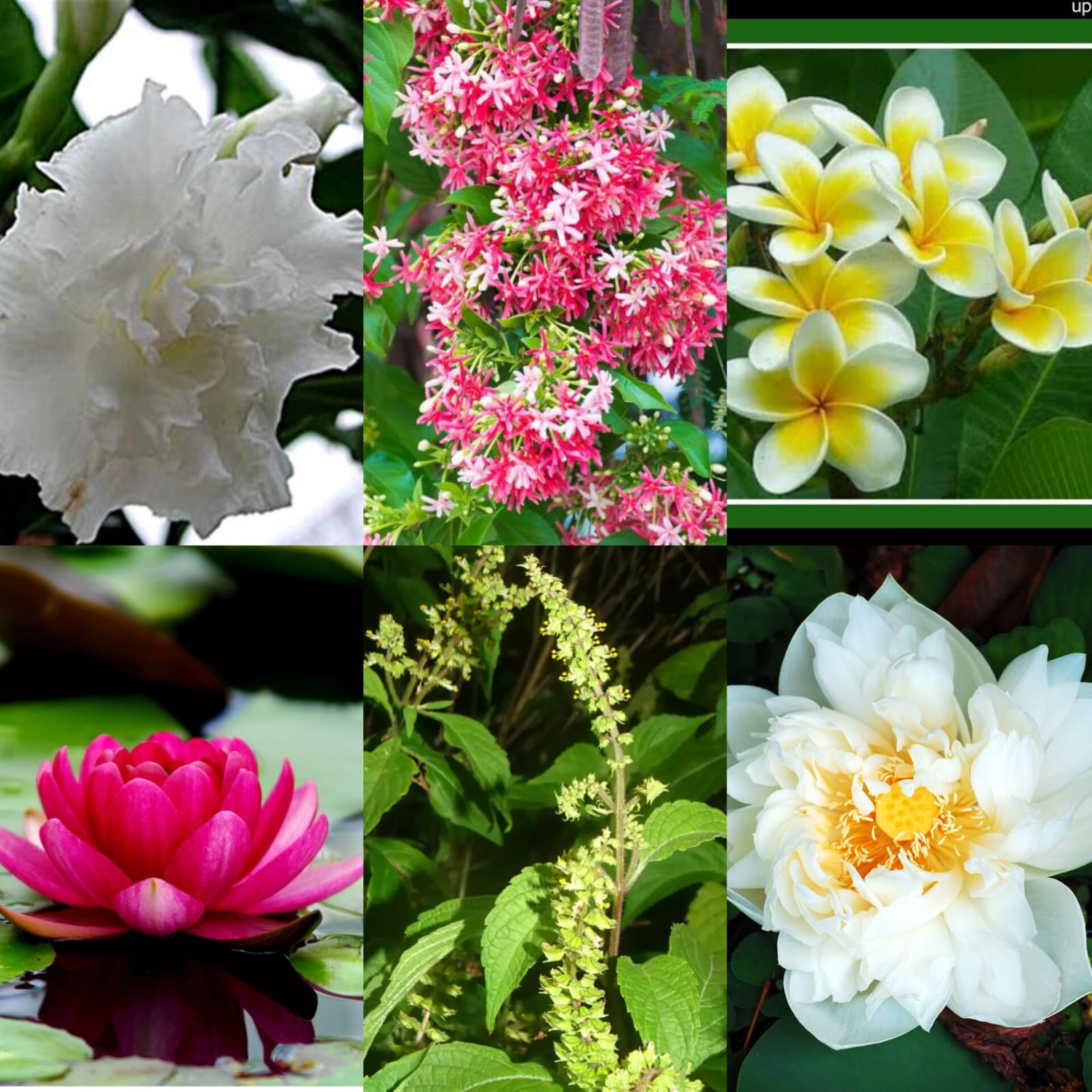 1. വൈഷ്ണവം: കൃഷ്ണതുളസി, രാമതുളസി, വെള്ളത്താമര, ചെന്താമര, പ്ലാശ്, പിച്ചകം, ജമന്തി, മുല്ല, കുരുക്കുത്തിമുല്ല, നാഗം, കാട്ടു...