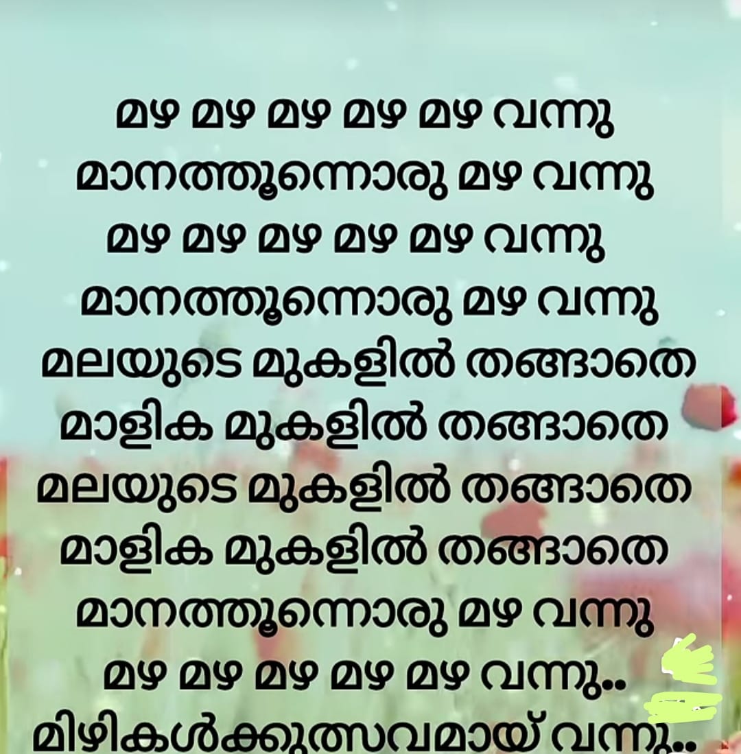 മഴയെപ്പറ്റി താരാട്ടുപാട്ടും തേക്കുപാട്ടും കളിപ്പാട്ടുകളും ധാരാളമു ണ്ടായിരുന്നു.