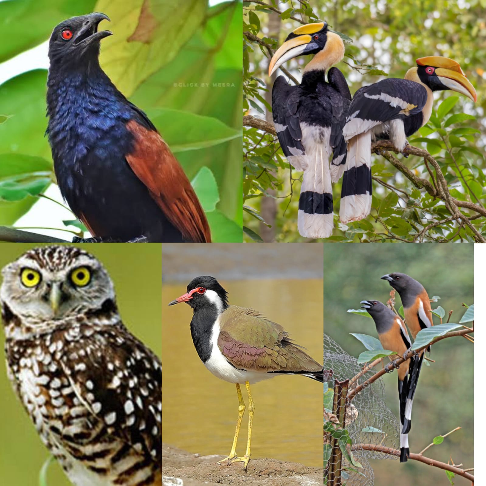 "പുള്ളും പുള്ളുവരും: പുള്ളുവസമുദായക്കാർക്ക് ഈ പേര് വരുവാൻ കാരണംതന്നെ ഈ പക്ഷിയുമായി ബന്ധപ്പെട്ടതുകൊണ്ടാണ്. നത്തുകളുടെ വംശത്തിൽ വരുന്ന പക്ഷിയാണ് പുള്ളുകൾ. ഇവയോട് ബന്ധപ്പെട്ടിരിക്കുന്ന 'പക്ഷിപീഡ' ആചാരങ്ങളും നാനാജാതി ജനങ്ങളിലും നിലനിൽക്കുന്നു. മാനവിക നാടൻസംസ്കാരത്തിൻ്റെ ഉത്തമ ഉദാഹരണങ്ങളാണ് ഈ പക്ഷികൾ. ചെമ്പോത്ത് (ഉപ്പൻ): പല പേരുകളിൽ അറിയപ്പെടുന്ന ഇവന്, പോത്തിൻ്റെ നിറമുള്ള ദേഹവും ഏകദേശം ചെമ്പിൻ്റെ നിറമുള്ള ചിറകുകളുമാണ് ഉള്ളത്. ഇവനെ ഉപ്പൻ, ചകോരൻ എന്നീ പേരുകളിൽ പറഞ്ഞു കേൾക്കുന്നു. ചെമ്പോത്ത് എന്ന പേര് വിളിച്ചാൽ അതിന് ആ ദിവസം ഭക്ഷണം കിട്ടില്ല എന്ന് അമ്മൂമ്മ പറഞ്ഞത് ഓർക്കുന്നു. കാഴ്ചയിൽ പരുക്കൻ സ്വഭാവക്കാരനാണ് ഉപ്പൻ. തൻ്റെ ചുവന്ന കണ്ണുകൾകൊണ്ട് സൂക്ഷിച്ചു നോക്കി മന്ദം മന്ദം ആലോചിച്ച് ആണ് കക്ഷിയുടെ നടപ്പ്. ഉപ്പൻ ഭക്ഷണം മിക്കവാറും നിലത്തുനിന്നാണ് കണ്ടെത്തുന്നത്. ഉപ്പൻ ഒരു മാന്ത്രികൻകൂടിയാണ്. ഇരുമ്പ് ഉരുക്കാൻ ശേഷിയുള്ള ഒരു അപൂർവ്വ മരത്തിൻ്റെ വേരുസൂക്ഷിപ്പുകാരനാണ് ഉപ്പൻ. ഇത് ഉപ്പന്റെ കൈയിൽനിന്ന് കിട്ടാൻ ഒരു സൂത്രപ്പണിയും പറഞ്ഞുകേൾക്കുന്നുണ്ട്. ഉപ്പൻ്റെ കുഞ്ഞിനെ ഒരു ഇരുമ്പുകൂട്ടിൽ ബന്ധിച്ചാൽ കുഞ്ഞിനെ രക്ഷിക്കാനായി ഉപ്പൻ മരുന്നു കൊണ്ടുവരും എന്നതാണ് വിശ്വാസം. ഓലേഞ്ഞാലി: തന്റെ സ്വഭാവവിശേഷതകൊണ്ടും ശബ്ദവാചാലതകൊണ്ടും നമ്മുടെ ശ്രദ്ധ ആകർഷിക്കുന്ന പക്ഷിയാണ് ഓലേഞ്ഞാലി. 'ഓലേഞ്ഞാലി', 'ഓലമുറിയൻ', 'പുകബ്ളായി', 'പൂക്കുറിഞ്ഞി', 'കുട്യർളിപക്ഷി', 'കോയകുറിഞ്ഞി' എന്നെല്ലാം പേരുകളിൽ അറിയപ്പെടുന്നു. ഈ പേരുകളെല്ലാംതന്നെ ഓലേഞ്ഞാലിക്ക് നമ്മുടെ ഇടയിലുള്ള സ്വാധീനത്തെ സൂചിപ്പിക്കുന്നു. തിത്തിരിപ്പക്ഷികൾ: തിത്തിരിപ്പക്ഷികൾ തറയിൽത്തന്നെ ജീവിക്കുന്ന പക്ഷികളാണ്. അവയ്ക്ക് മരമുകളിൽ ഇരിക്കാനുള്ള കഴിവില്ല. പക്ഷേ, ഇവയ്ക്ക് എത്രദൂരം വേണമെങ്കിലും ആവശ്യം വന്നാൽ വളരെ വേഗത്തോടെ പറക്കുവാൻ സാധിക്കും. തിത്തിരിപ്പക്ഷികളുടെ ആഹാരം തറയിലും മണ്ണിലുമുള്ള കൃമികളും പുഴുക്കളുമാണ്. മൂങ്ങകളും നത്തുകളും: സാധാരണയായി ധാരാളം മരങ്ങളുള്ള പ്രദേശങ്ങളിൽ കൂടുതലായി ഇവയെ കാണാമെങ്കിലും അല്ലാത്ത സ്ഥലങ്ങളിലും നമുക്ക് വിരളമായി കാണാം. നത്തുകൾക്കും മൂങ്ങകൾക്കും പൊതുവെ ഭീതിയുടെ പരിവേഷമാണ് ചാർത്തിക്കാണുന്നത്. സ്വതവെ നത്തുകളെ തട്ടിൻ പുറങ്ങളിലാണ് കാണാറുള്ളത്. നത്ത് ഇനത്തിൽപ്പെട്ട പുള്ള് പുള്ളുവരുടെ ആചാരങ്ങളുമായി ബന്ധപ്പെട്ടിരിക്കുന്നു. ഇവയുടെ ഉണ്ടക്കണ്ണുകളും അതിനോടു യോജിക്കുന്ന രീതിയിലുള്ള പുള്ളി തൂവലുകളും ആരുടെ മനസ്സിലും ഭയം ഉണ്ടാക്കുമെന്നത് സത്യമാണ്. വേഴാമ്പൽ: കേരളീയരുടെ ദേശീയപക്ഷിയായി അംഗീകരിച്ചിട്ടുള്ള പക്ഷിരാജനാണ് മലമുഴക്കി വേഴ