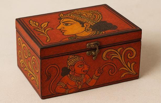 ഇന്ന് ഇത്തരം പ്രകൃതിദത്തമായ ചായവ്യവസ്ഥ ഉപയോഗിക്കുന്ന രീതി മാഞ്ഞുകഴിഞ്ഞിരിക്കുന്നു. മുകളിൽ പറഞ്ഞതരത്തിലുള്ള പെട്ടിനിർമ്മാണം എന്ന കുടിൽവ്യവസായം വേരറ്റുപോയതിനാൽ അതുമായി ബന്ധപ്പെട്ട കലാവിദ്യയും നഷ്ടപ്രായമായിരിക്കുന്നു. കയ്യും കണക്കും ഒപ്പിച്ച് വീരാളി വരയ്ക്കുന്ന തലമുറയാകട്ടെ അന്യം നിന്നുപോകാൻ നാളുകളേറെ വേണ്ടിവരികയുമില്ല. “ |
