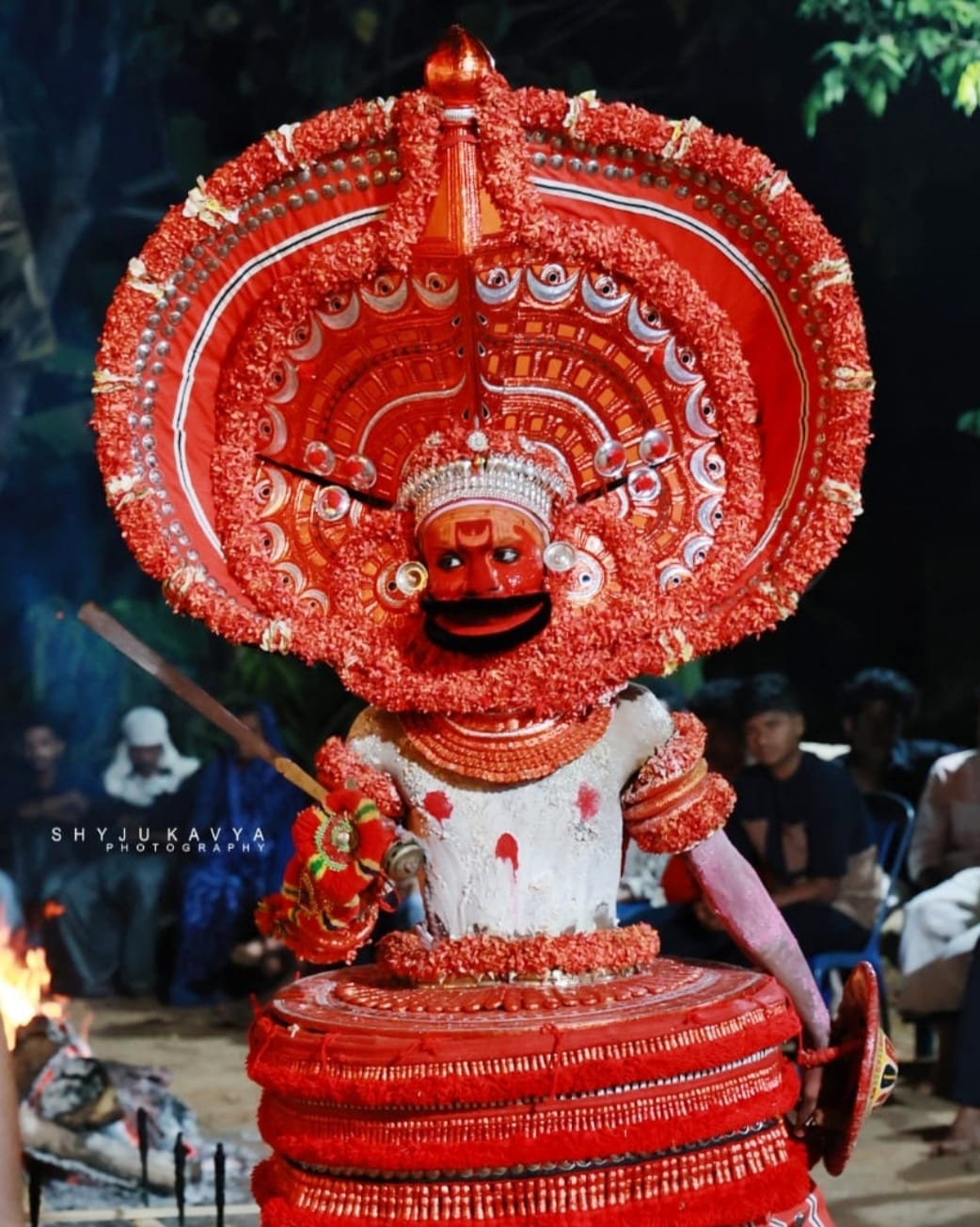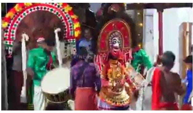 " തെയ്യങ്ങളുടെ രൂപപ്പൊലിമയ്ക്കു സഹായകമായ വസ്തുക്കളെല്ലാം പരിസരങ്ങളിൽനിന്ന് ലഭിക്കുന്നവയാണ്. മുഖത്തെഴുത്തിനുവേ...