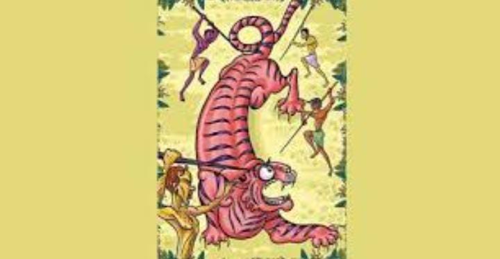 “വയനാട്ടിലെ മുള്ളുവക്കുറുമർ തുടങ്ങിയ ചില ആദിവാസിവർഗക്കാരുടെ ഒരു വിനോദം. നായാട്ടിൽ സാമർഥ്യമുള്ളവരാണ് കുറുമർ, കടുവയെ വലയിൽ വീഴ്ത്തി കുത്തിക്കൊ ല്ലുന്നു. ഇത് ഒരു വിനോദമെങ്കിലും അനുഷ്ഠാനത്തിന്റെ ഗൗരവം അവർ കാണിക്കുന്നു. കടുവയെ വർഗത്തലവൻ (മൂപ്പൻ) തന്നെ കുത്തണമെന്നാണ് നിയമം. ചെണ്ടയും തുടിയും ആർപ്പും വിളിയുമെല്ലാമുണ്ടാകും.