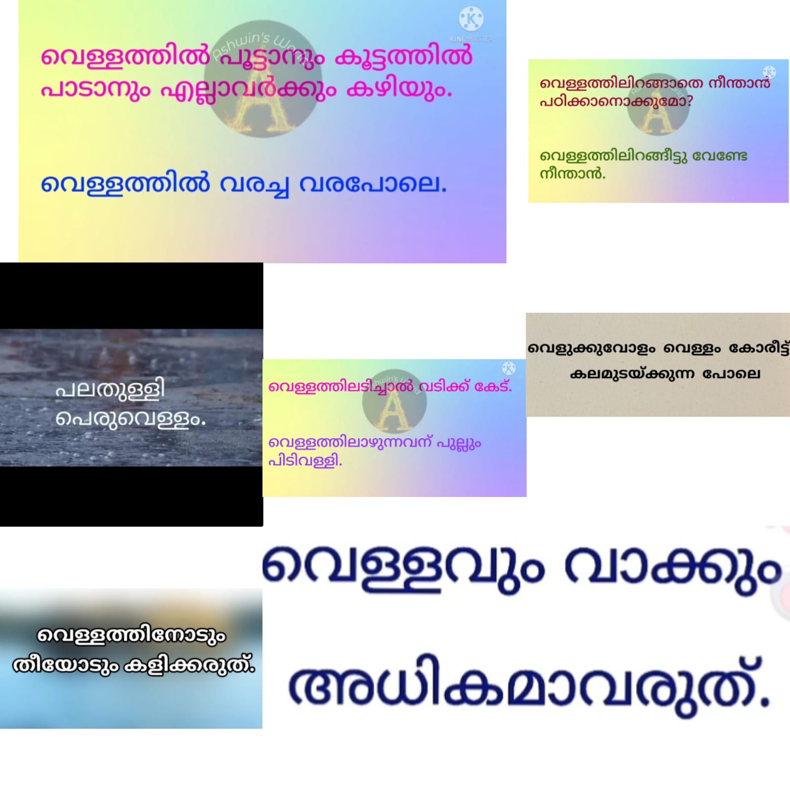 "നാടോടി സാഹിത്യത്തിലെ ഏറ്റവും ജനകീയമായതും സുഗമമായ കൈമാറ്റത്തിന് വിധേയമാകുന്നതും പഴഞ്ചൊല്ലുകൾ തന്നെ. നാട്ടുജീവിതത്തിലെ അലിവുള്ള അറിവുകളെ അവ അയത്നലളിതമായി കൈമാറുമ്പോൾ അതിൽ നാട്ടു തത്ത്വചിന്തയുടെ സാന്നിധ്യമുണ്ടെന്ന് പെട്ടെന്നറിയാൻ സാധിക്കുകയില്ല. 'സാഹിത്യസൗന്ദര്യശാസ്ത്രം' അതിൻ്റെ അടിയാധാരമായി പ്രവർത്തിക്കുന്നതും അറിയാൻ സാധിക്കുകയില്ല. സാഹിത്യവും തത്ത്വചിന്തയുമെല്ലാം ആധുനിക നാഗരികതകളിൽ പ്രത്യേകം പ്രത്യേകമായി കൈകാര്യം ചെയ്യപ്പെടുകയും അതിൻ്റെ അധികാരികളായി 'ഉടമകൾ' നിലനിൽക്കുകയും ചെയ്യപ്പെടുന്നു. പഴഞ്ചൊല്ലുകളാകട്ടെ ജീവിതത്തിൻ്റെ സർവ്വമണ്ഡലങ്ങളിലും (നാട്ടുജീവിതത്തിൽ) ഇടകലരുന്നു. ഉടമയും കാലവും അതിനുണ്ടാവില്ല. നീര്, വെള്ളം, മഴ തുടങ്ങിയ പദങ്ങളുടെ അർത്ഥപരിസരവുമായി ബന്ധപ്പെട്ട് രൂപപ്പെട്ട പഴഞ്ചൊല്ലുകൾ ധാരാളമുണ്ട്. 'പലതുള്ളി പെരുവെള്ളം' എന്ന ചൊല്ല് നാട്ടു കൂട്ടായ്മയുടെ തത്ത്വത്തെ രൂപകവത്കരിക്കുന്നു. മനുഷ്യർ ശീലങ്ങൾക്ക് അടിമയാണ് എന്ന ആശയത്തിന്റെ ആവിഷ്കാരമാണ്. 'നായ് നടുക്കടലിൽ ചെന്നാലും നക്കിയേ കുടിക്കൂ' എന്ന ചൊല്ല്. 'കർമ്മഫലം' എന്ന പരികല്പനയെ 'ഉപ്പുതിന്നുന്നവൻ വെള്ളം കുടിക്കും' എന്ന് ചൊല്ല് ഉൾക്കൊള്ളുന്നു. ഇങ്ങനെ ചൊല്ലുകൾ നാട്ടുതത്ത്വചിന്തയുടെയും നാട്ടറിവിൻ്റെയും ലോക വീക്ഷണത്തിൻ്റെയും സ്വഭാവങ്ങളെ ഒരുപോലെ ഉൾക്കൊള്ളുന്നു. “നീന്താനറിയാത്ത മാടിനെ വെള്ളം കൊണ്ടുപോകും ഒഴുക്കിനെതിരെ നീന്തുക കാക്ക കുളിച്ചാൽ കൊക്കാകുമോ? നനഞ്ഞാൽ കുളിച്ചുതന്നെ കയറണം കട്ടത്തറയിൽ മുക്കിളിയിടാനാവുമോ നടുക്കടലാണേലും നാവുനനയ്ക്കാൻ വെള്ളമില്ല വെള്ളത്തിൽ വരച്ച വര ഉമിനീരിറക്കിയാൽ ദാഹം തീരില്ല മഴയെന്തെന്നറിയാത്ത വിളവ് തള്ളമുഖം കാണാപിള്ളയും മഴമുഖം കാണാവിളയും കുംഭത്തിൽ മഴ കുപ്പയിലും പൊന്ന് നനഞ്ഞിടം കുഴിക്കരുത് കണ്ണീരിൽ വിളഞ്ഞ വിദ്യയും തണ്ണീരിൽ വിളഞ്ഞ നെല്ലും ദാ വരുന്നൊരു കലപുലിയാന (മഴ) നിറകുടം തുളുമ്പുകയില്ല കുംഭത്തിൽ മഴപെയ്താൽ കുപ്പയിലും ചോറ് തുലാപ്പത്തുകഴിഞ്ഞാൽ പിലാപ്പൊത്തിലും പാർക്കാം തുലാപ്പത്തു തോര പൂപ്പത്ത് നട്ടുനനയ്ക്കയും നനച്ചു പറിക്കയും. " |