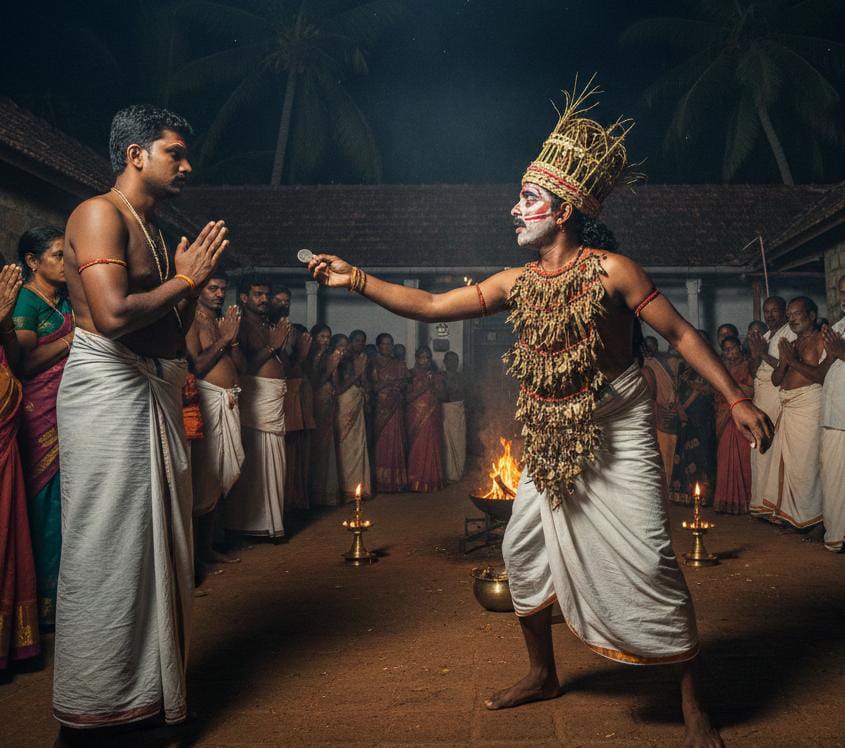 1.“സദ്ഗതി പ്രാപിച്ച പരേതാത്മാക്കളാണ് നെകലുകൾ. ആത്മാവുകളെ ജീവിച്ചിരിക്കുന്നവരിൽ ആവേശിപ്പിച്ച് ഇത്തരം ആട്ട...