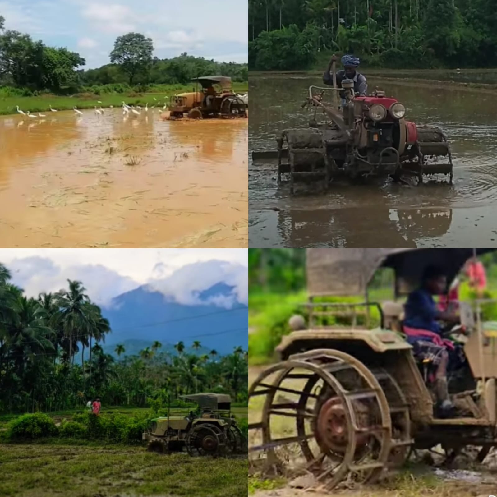 ''ട്രാക്ടർ ഉഴവിനായി ഇന്ന് ഉപയോഗിക്കുന്നു. അതിനു മുമ്പ് പോത്തുകളെയും കാളകളെയും നുകംവച്ച് കലപ്പകളിൽ ബന്ധിച്ചായിരുന്നു നിലം ഉഴവ്. അഞ്ചും ആറും ഏര്, കന്നുകളെ (ഏര് = ഒരു ജോഡികളെക്കെട്ടിയ കലപ്പ) ഒന്നിനു പിറകേ ഒന്നായി നടത്തിയാണ് ഉഴവ് നടത്തിയിരുന്നത്. നുകത്തിലുള്ള പൊഴികൾക്കിടയിൽ കാളകളുടെ കഴുത്തുവച്ച് പ്രത്യേകമായി കെട്ടിയുണ്ടാക്കിയ നുകവള്ളിയും. അത് വീണ് പോകാതിരിക്കാൻ നുകക്കോൽ തിരുകിയുമാണ് കാളകളെ നുകത്തിൽ ബന്ധിപ്പിച്ചിരുന്നത്. കലപ്പയുടെ 3-4 കോൽ നീളമുള്ള കരിക്കോൽ നുകത്തിലേക്ക് രണ്ട് കാളകൾക്കും മദ്ധ്യത്തിലായി 'കെട്ടുവള്ളി' ഉപയോഗിച്ച് ബന്ധിക്കുന്നു. കാളകൾ മുന്നോട്ട് നടക്കുമ്പോൾ ഉഴവുകാരൻ കലപ്പ പിടിച്ച് ഉഴവ് നടത്തുന്നു. ഒരു വിരൽ വണ്ണമുള്ള പുല്ലാനിവള്ളി പിരിച്ച് നുകവള്ളിയും കരിമ്പനത്തണ്ടിലെ പൊളിരെടുത്ത് കെട്ടുവള്ളിയും ഉണ്ടാക്കും. ഒരു കോൽ നീളമുള്ള കാഞ്ഞിരക്കോലിന് പകുതി നീളം പുല്ലാനിവള്ളികൊണ്ട് പിടി കെട്ടി 'മുടിയൻകോൽ' ഉണ്ടാക്കുന്നു. ഇതുകൊണ്ട് കാളകളെ തല്ലിയാണ് ഉഴവിൻ്റെ ഗതി നിയന്ത്രിച്ചിരുന്നത്. നിലം നീളത്തിലും കുറുകെയും വീണ്ടും നീളത്തിലും മൂന്നു ചാൽ ഉഴുതു മറിച്ചതിനു ശേഷം ഊർച്ചമരംകൊണ്ട് രണ്ട് ചാൽ നിരപ്പാക്കിയതിനു ശേഷമാണ് ഞാറ് നട്ടിരുന്നത്. ഊർച്ചമരം പിടിയുള്ള ഒരു പരന്ന പലകയാണ്. ഇത് കലപ്പയ്ക്ക് പകരം കാളകളെക്കൊണ്ട് വലിപ്പിച്ചാണ് നിലം നിരപ്പാക്കിയിരുന്നത്. നിലം നിരത്തുന്നതിന് പ്രത്യേകം ഊർച്ചകന്നുകളെ പോറ്റിയിരുന്നു. ഉഴവ് കഴിഞ്ഞാൽ അതാത് ദിവസം കന്നുകളെ ചിറയിലോ തോട്ടിലോ കുളിപ്പിച്ചിരുന്നു. അവയുടെ ശരീരത്തിലെ ചേർ കളയുന്നതിന് പനയോല ചീകി കെട്ടിയ 'ചൗളി'യാണ് ഉപയോഗിച്ചിരുന്നത്. ഉഴുത് നിലം തയ്യാറാക്കിയ കണ്ടങ്ങളിൽ ഞാറ്റടിയിൽനിന്ന് ഞാറ് പറിച്ചു നടുകയോ, ചെളിയിൽ വിത്തു വിതയ്ക്കുകയോ ചെയ്യുന്നു. നെൽച്ചെടി വളർന്നു വരുന്നതിനനുസരിച്ചു മറ്റു ചെടികളും ഇടയ്ക്കിടെ കളകളായി വളർന്നുവരുന്നു. അങ്ങനെ കളകളായി വരുന്നവയാണ് പൊള്ളക്കള, ചേങ്ങോൽ, ചോളപ്പുല്ല്, പരുവപ്പുല്ല്, നീർഗ്രാമ്പ്, vallinsaria ഇവ; ഒന്നോ രണ്ടോ തവണകളായി പറിച്ചു മാറ്റുകയാണ് പതിവ്, സ്ത്രീകൾ നിരയായി നിന്നാണ് ഇതു ചെയ്യുന്നത്. അപ്പോൾ വടക്കൻ പാട്ടും പാടും. " ഉഴവുപാട്ട് : ഉഴുതുണ്ണുന്ന ശീലമുള്ള കൃഷിക്കാർ അച്ചാലും മുച്ചാലും കൂട്ടി കൃഷിക്കായി നിലമൊരുക്കുമ്പോൾ പാടുന്ന പാട്ടുകളാണിവ. 1. “ഓവോവോ, ഓവോവോ, ഓവോവോവേ.... രെരെ രേ രേ രെ രേ രെ രെരെ.... രേ രേ രെ ....രേ രെ വോവോവോ .... വൊ വോ.... വൊ വോ പേരെടാ പേരെടാ കാളെ.... പുള്ളിക്കാളേ.... അ.... പേരെടാ പേരെടാ കാളെ .... പുള്ളിക്കാളേ.... കണ്ടത്തിന്റെ വലത്തു ഭാഗം പേർന്നു വായോ കണ്ടത്തിന്റെ നാലു മൂലേം പേർന്നു വായോ." 2. ("തെക്കുന്നു വടക്കോട്ടു ചേന്നൻ കാളയെപ്പൂട്ടി തിന്താ